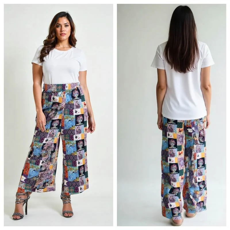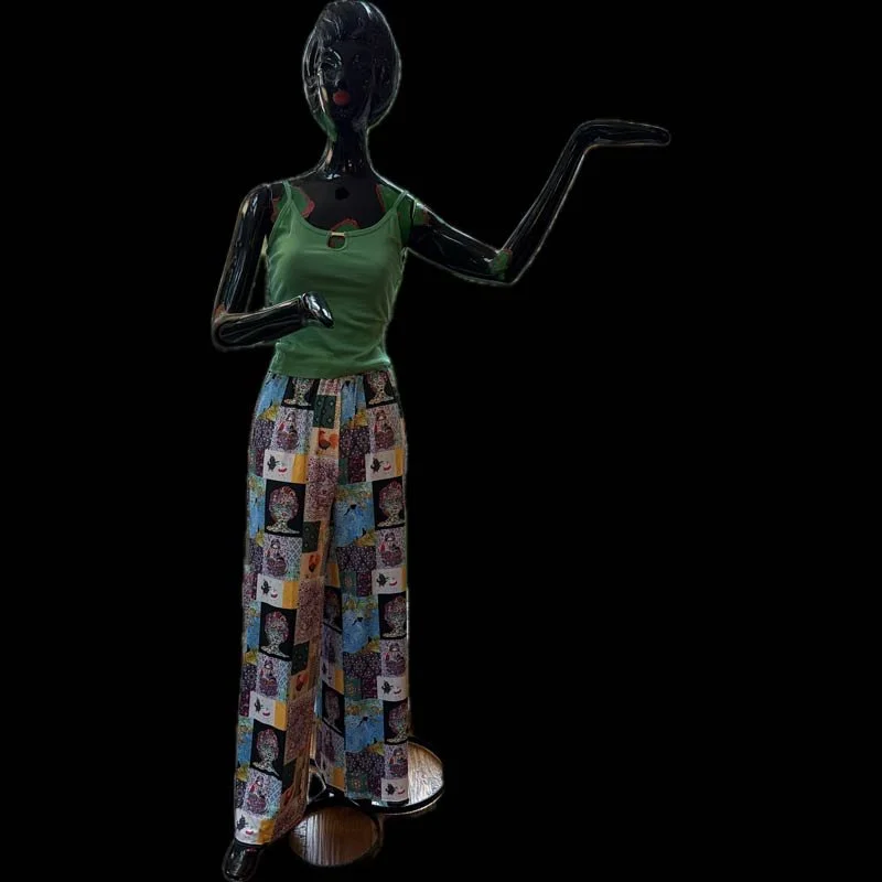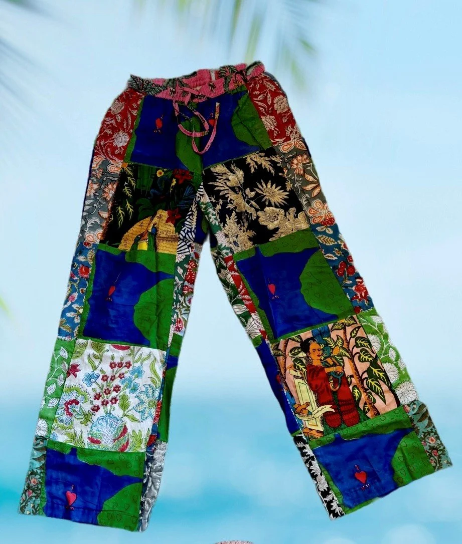 The design of these pants originated from a fusion of iconic cultural influences, blending the vibrant artistry of Frida Kahlo, the musical legacy of Prince, and the natural beauty of Minnesota. This unique combination celebrates both creativity and individuality; resulting in a one-of-a-kind print that reflects a rich, multi-layered history.