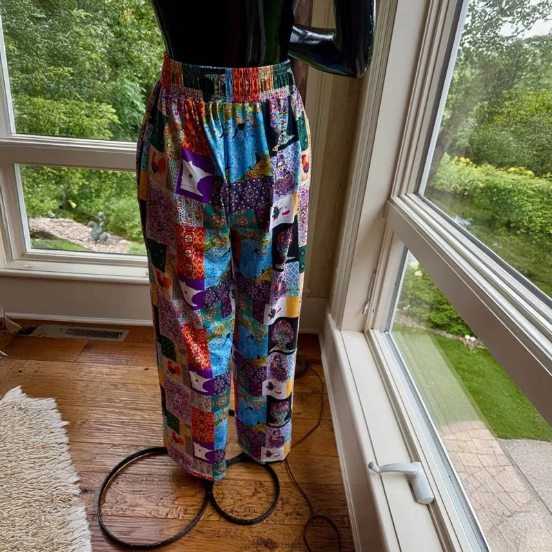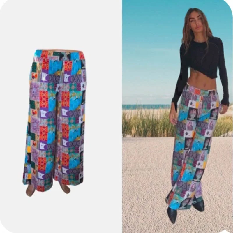 These pants are an exclusive piece of wearable art, blending iconic cultural references like Frida Kahlo, Prince, and the natural landscapes of Minnesota. The unique print makes each pair a rare find, celebrating creativity and individuality in a way that few others can match. Their limited nature and artistic design make them an extraordinary addition to any wardrobe, embodying a distinct fusion of history and fashion.